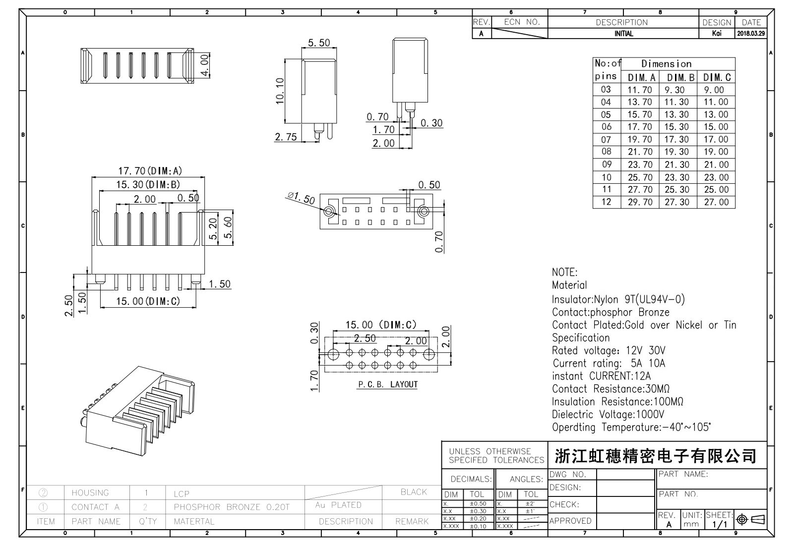 絕緣主體:Nylon 6T/9TUL94V-0