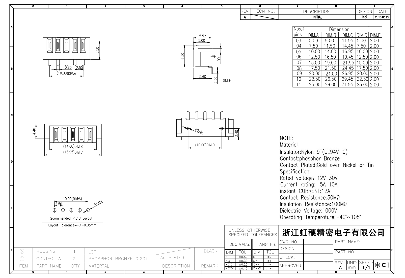 絕緣主體:Nylon 6T/9T(UL94V-0)