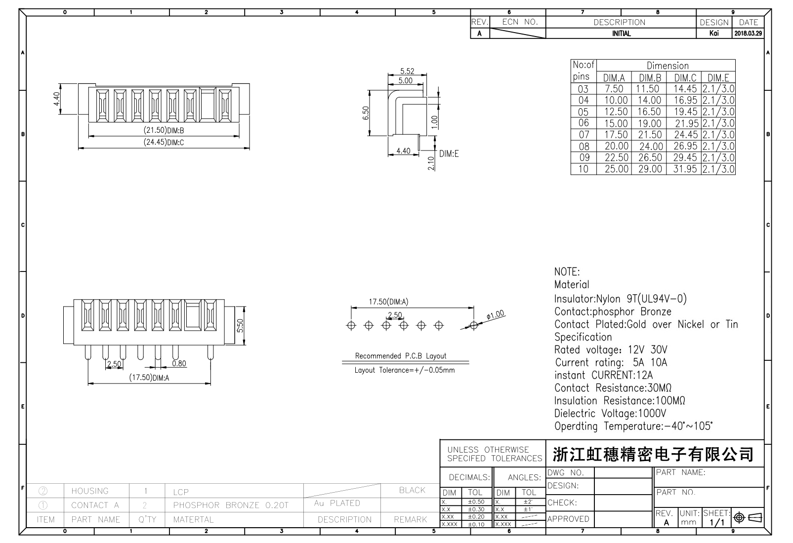 絕緣主體:Nylon 6T/9T(UL94V-0)