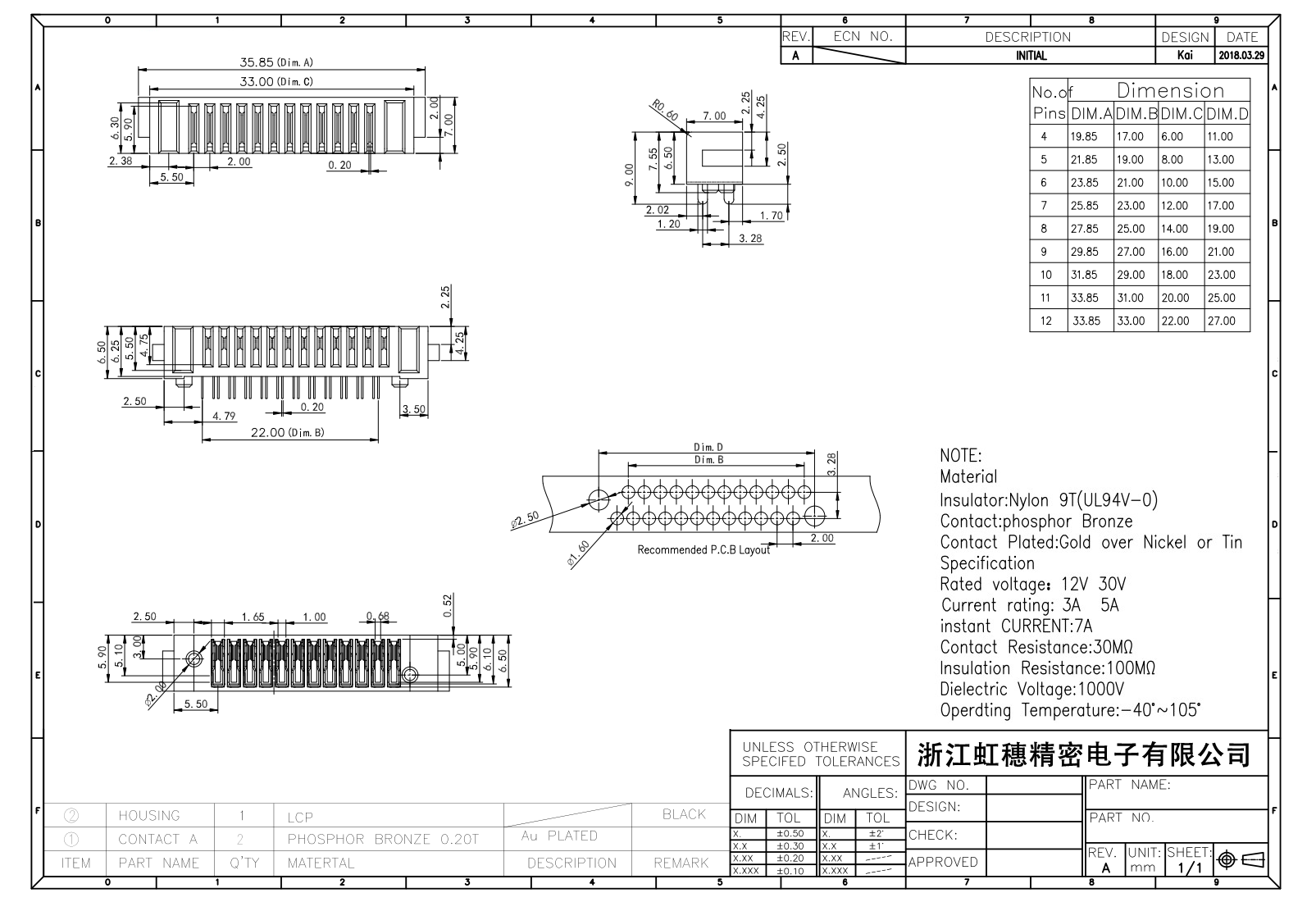 絕緣主體:Nylon 6T/9T(UL94V-0)