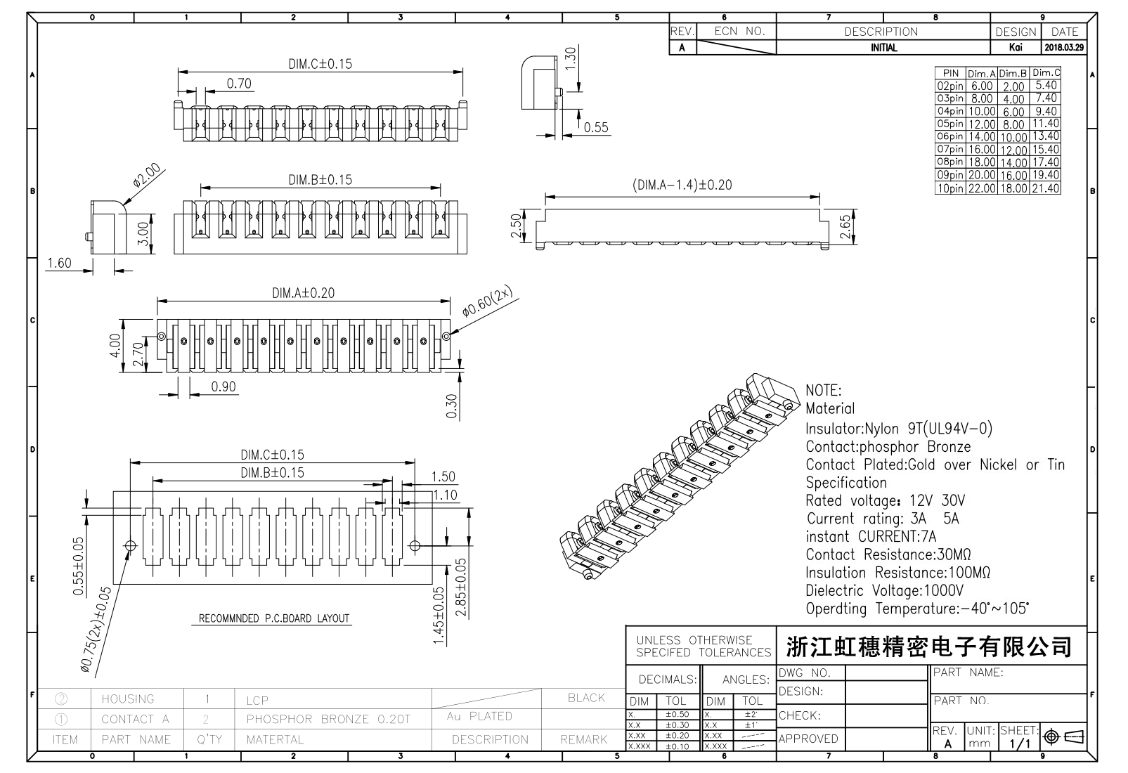 絕緣主體:Nylon 6T/9TUL94V-0