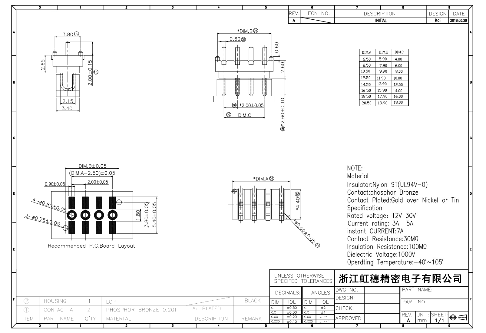 絕緣主體:Nylon 6T/9TUL94V-0