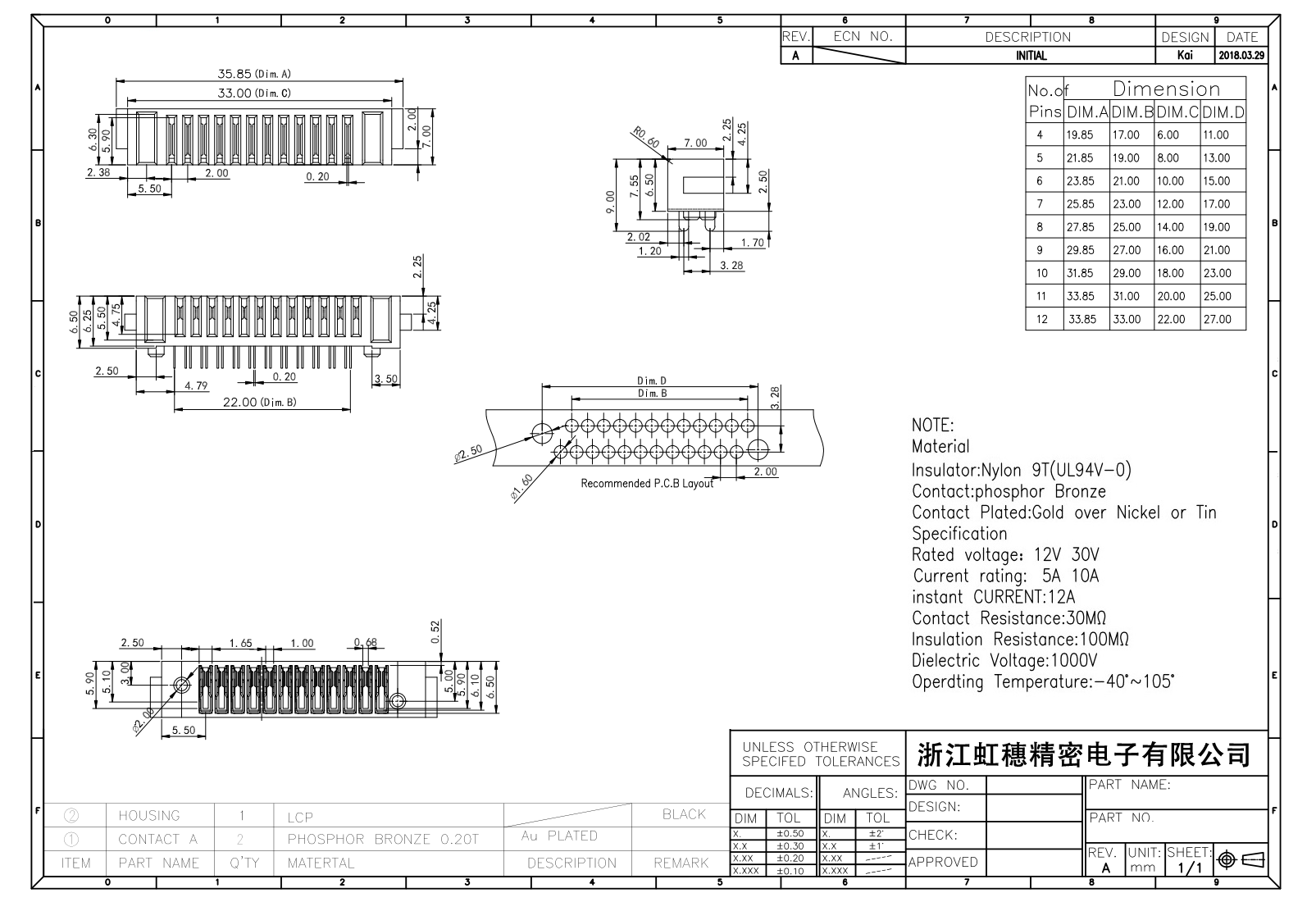 絕緣主體:Nylon 6T/9TUL94V-0