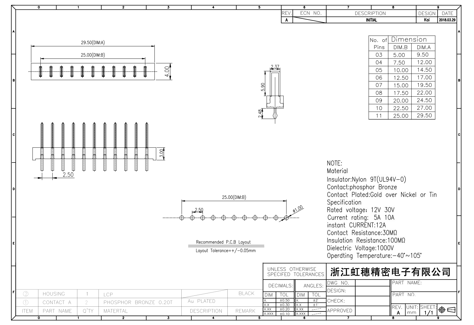 絕緣主體:Nylon 6T/9TUL94V-0