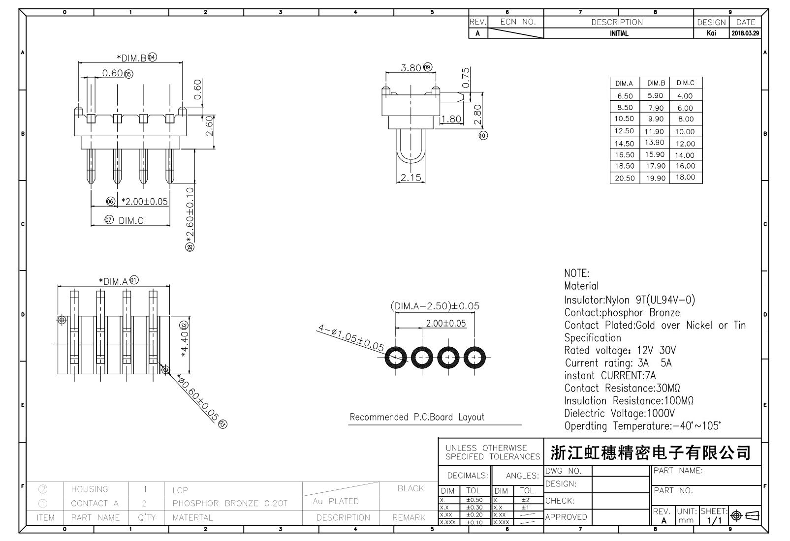 絕緣主體:Nylon 6T/9T(UL94V-0)