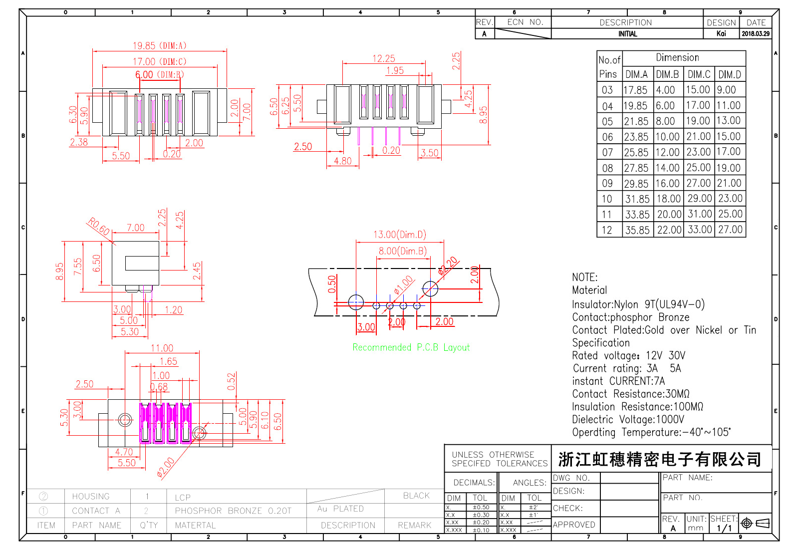 絕緣主體:Nylon 6T/9T(UL94V-0)