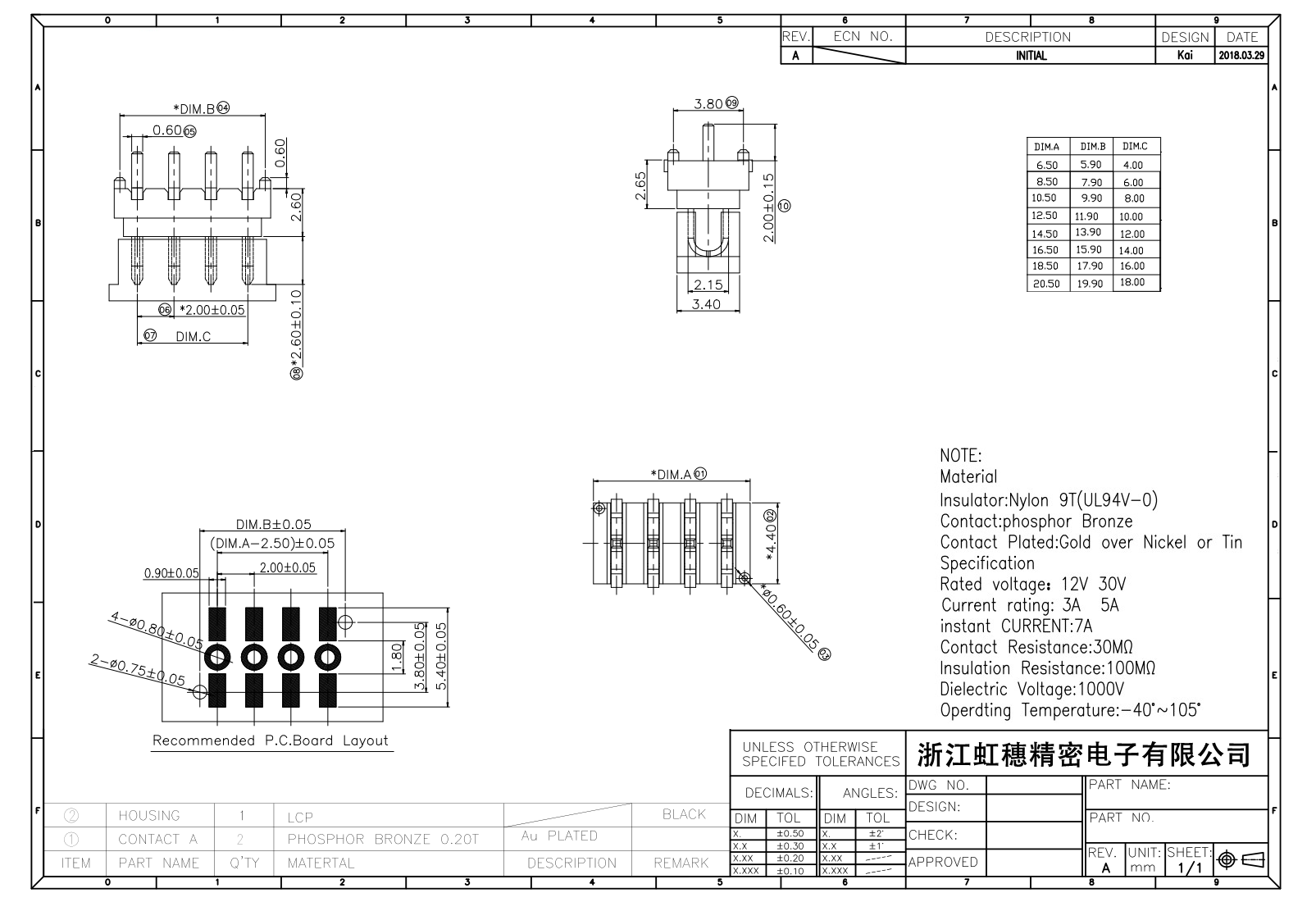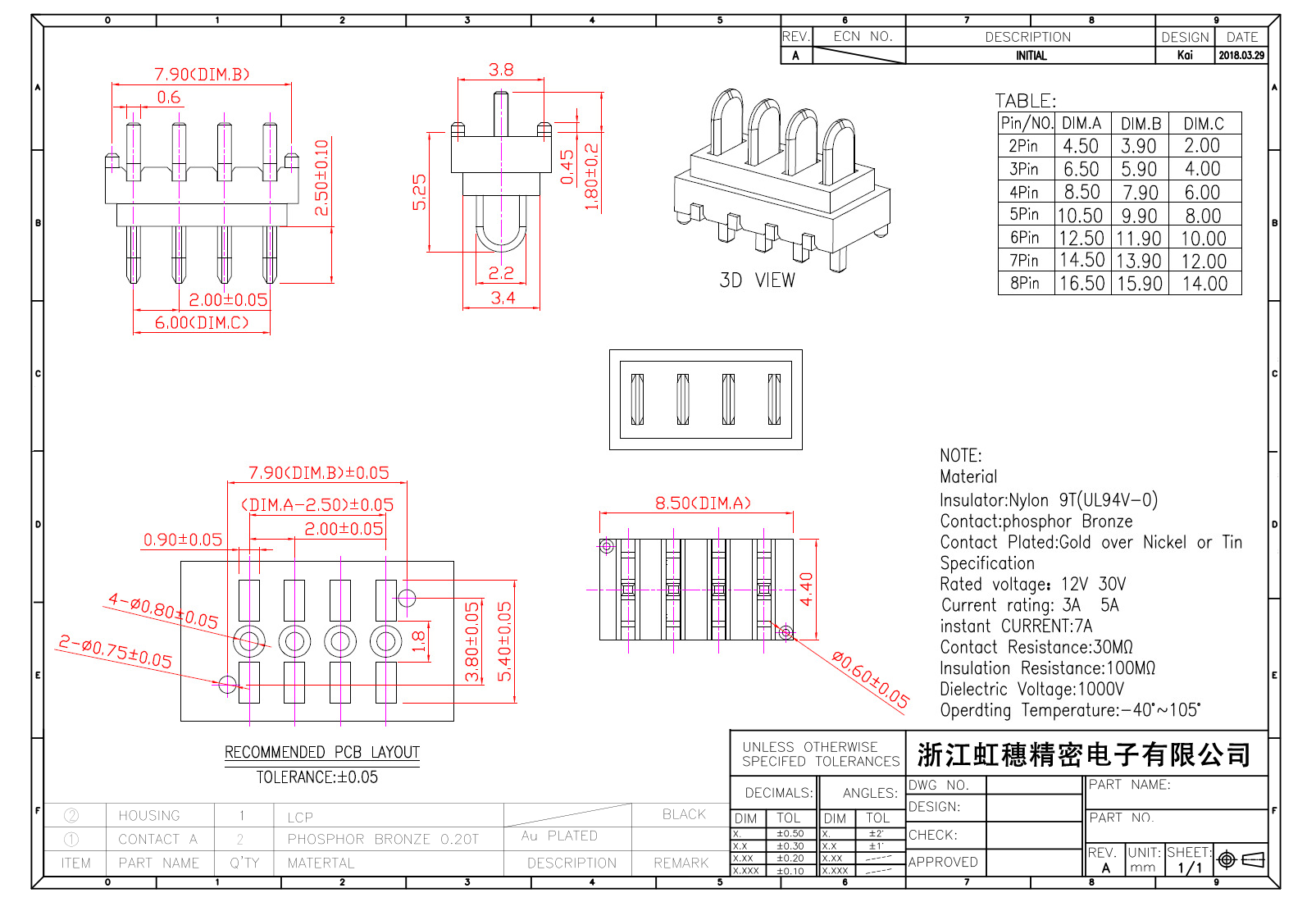 絕緣主體:Nylon 6T/9TUL94V-0