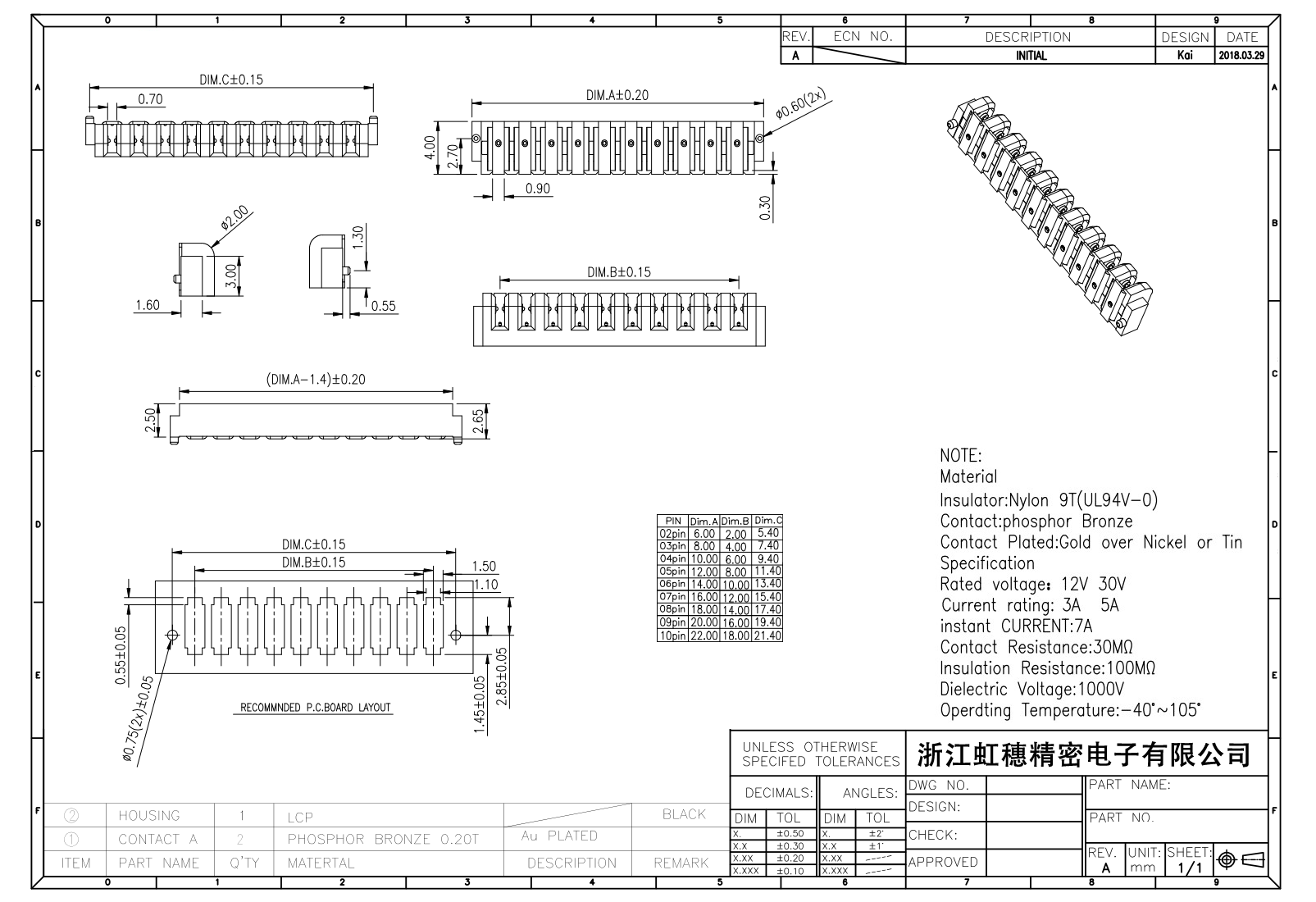 表面鍍層:金在鎳/錫之上,鍍層厚度3U