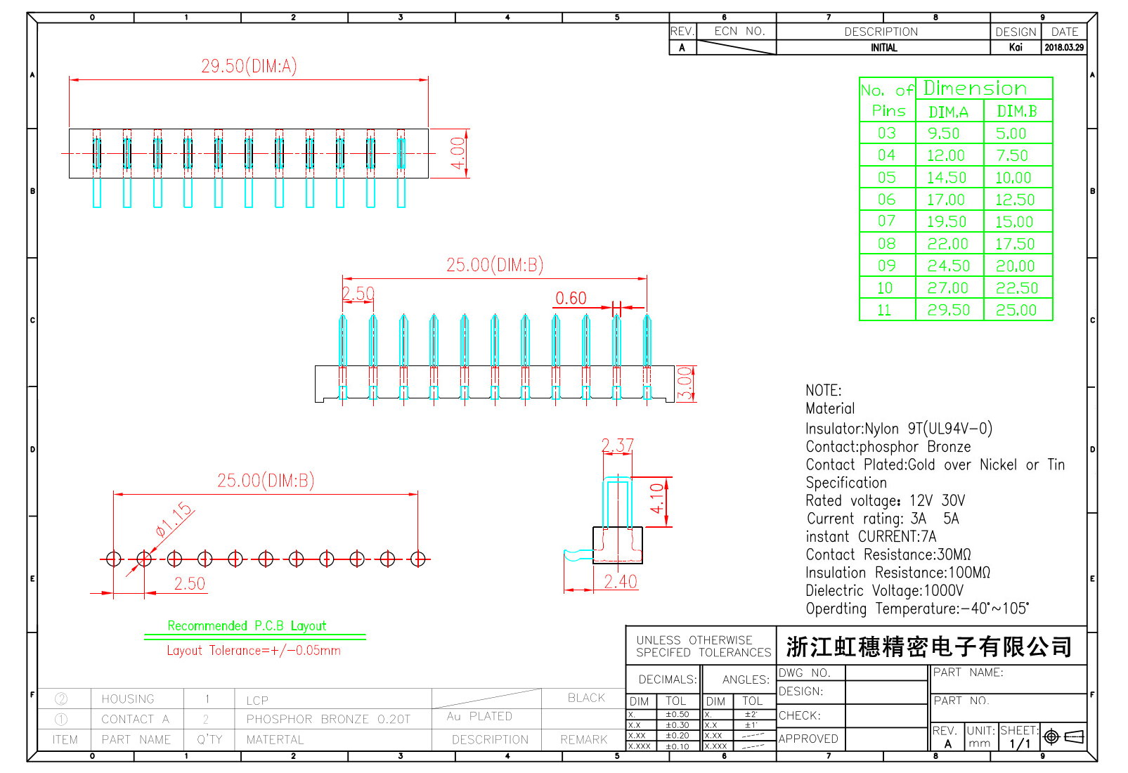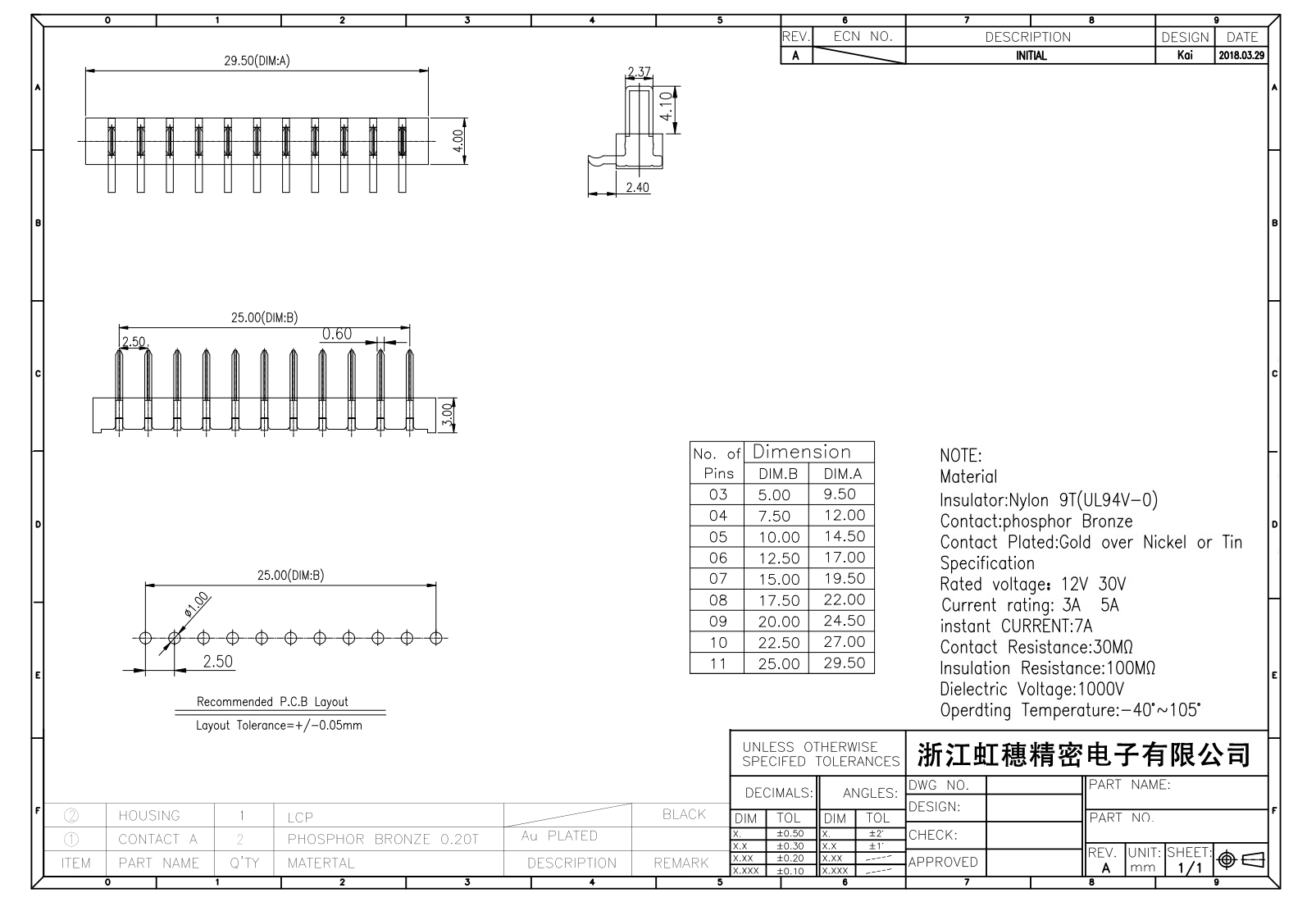 表面鍍層:金在鎳/錫之上,鍍層厚度3U