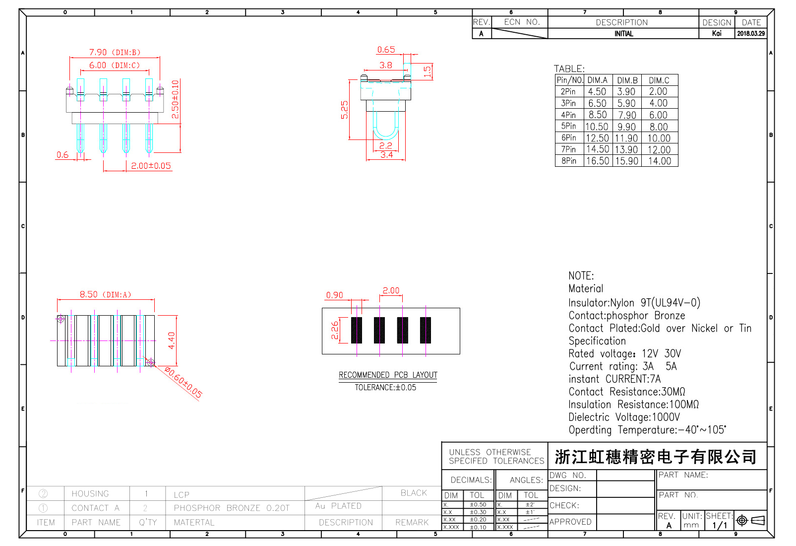 絕緣主體:Nylon 6T/9TUL94V-0