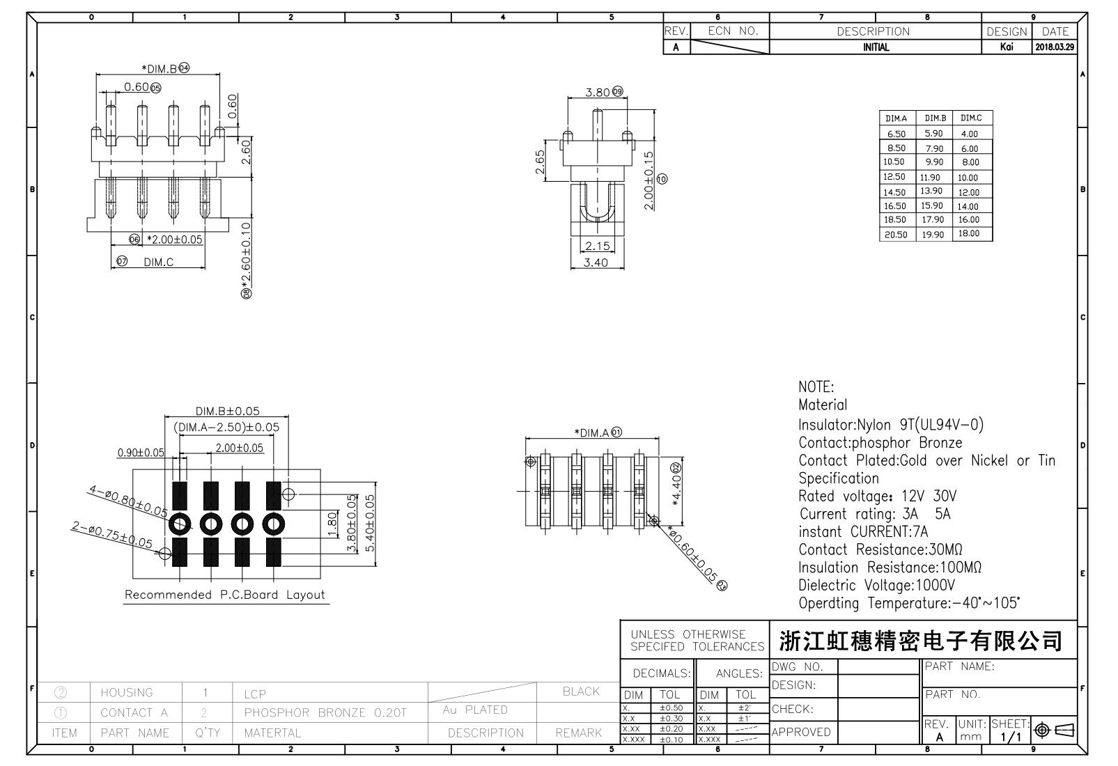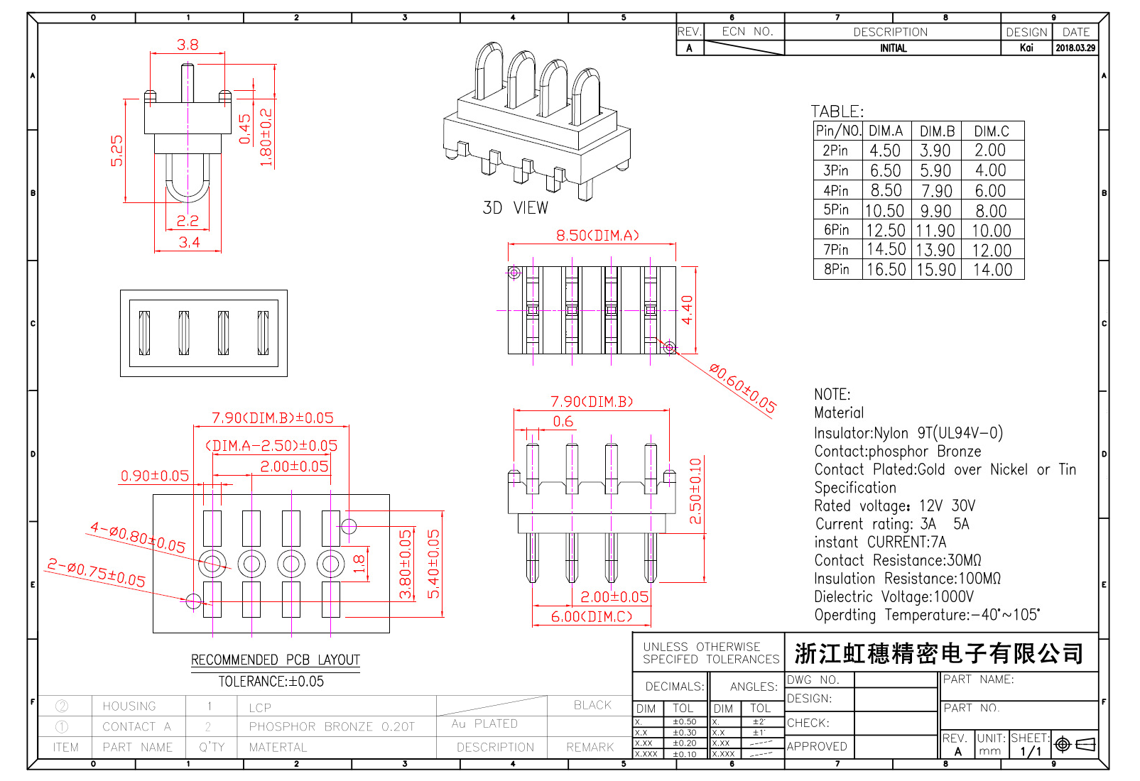 絕緣主體:Nylon 6T/9TUL94V-0