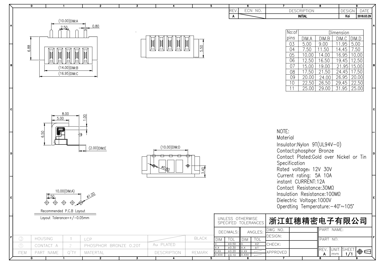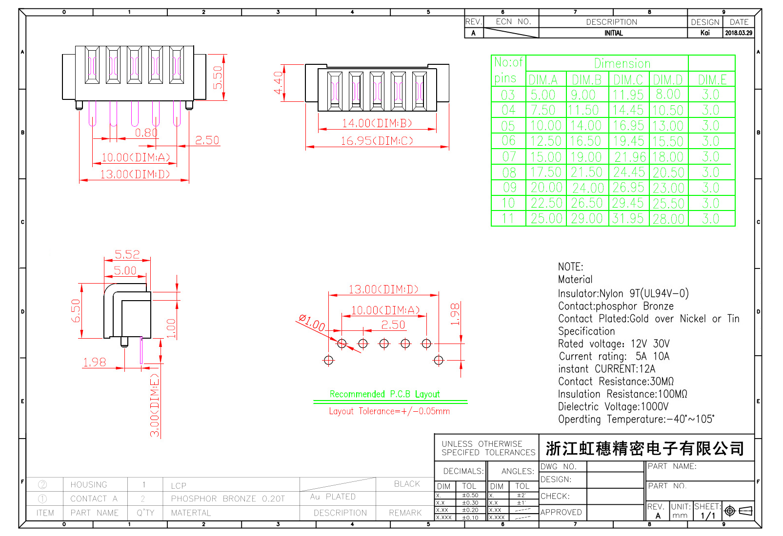 表面鍍層:金在鎳/錫之上,鍍層厚度3U