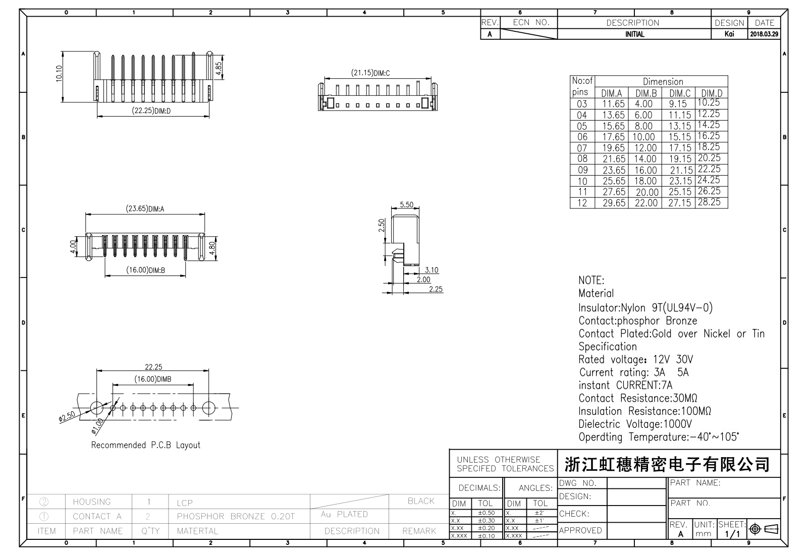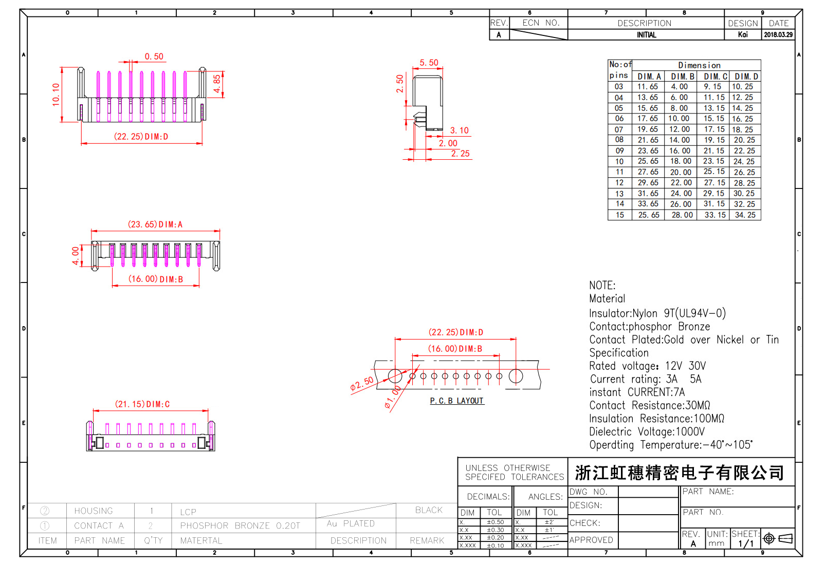絕緣主體:Nylon 6T/9T(UL94V-0)
