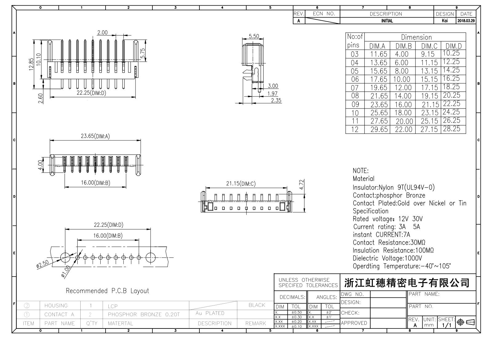 表面鍍層:金在鎳/錫之上,鍍層厚度3U