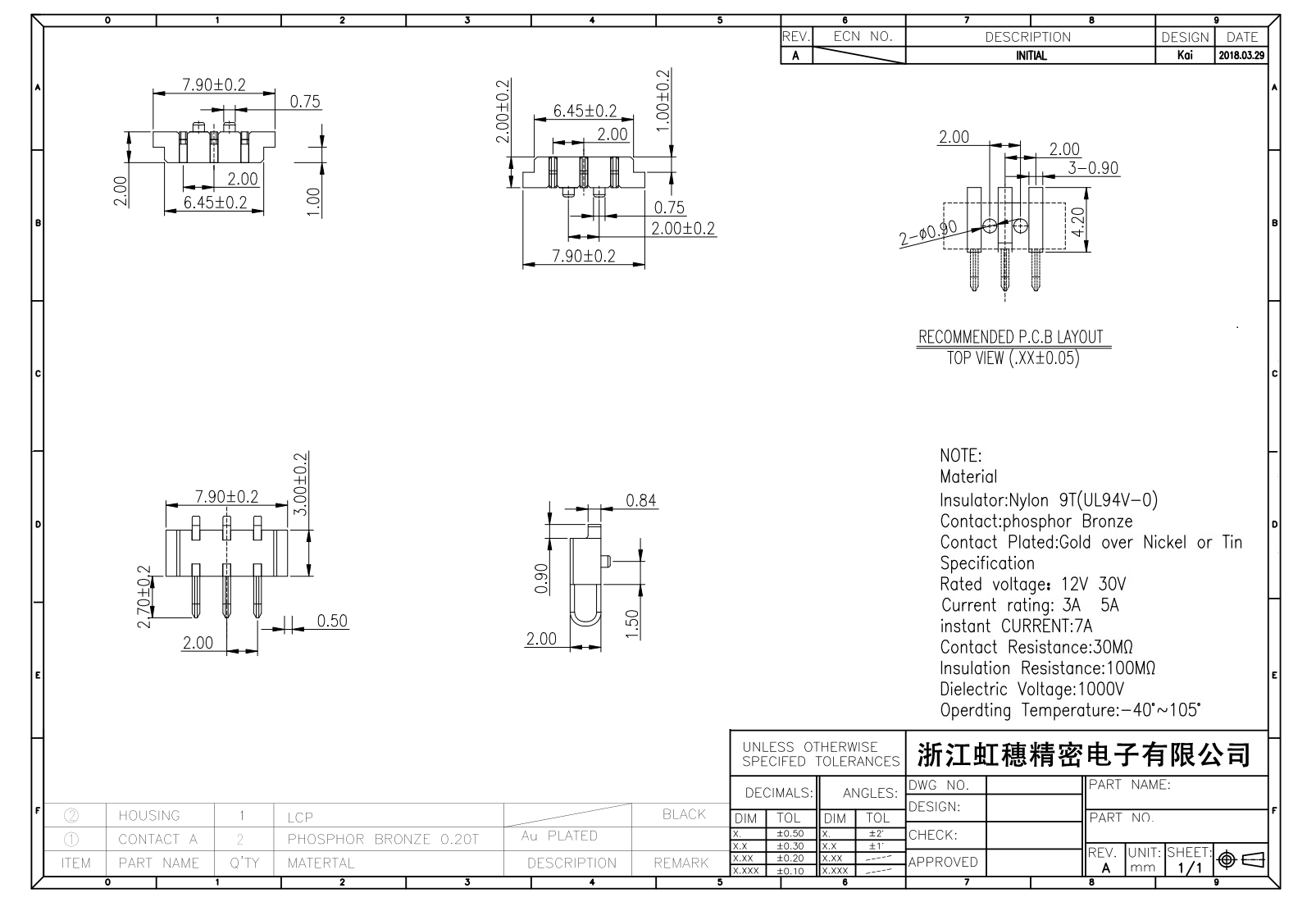 絕緣主體:Nylon 6T/9TUL94V-0