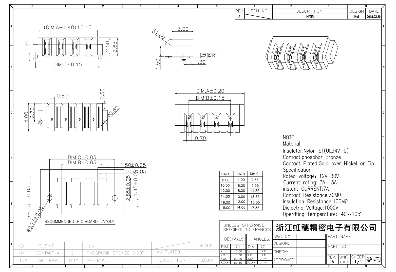 絕緣主體:Nylon 6T/9TUL94V-0