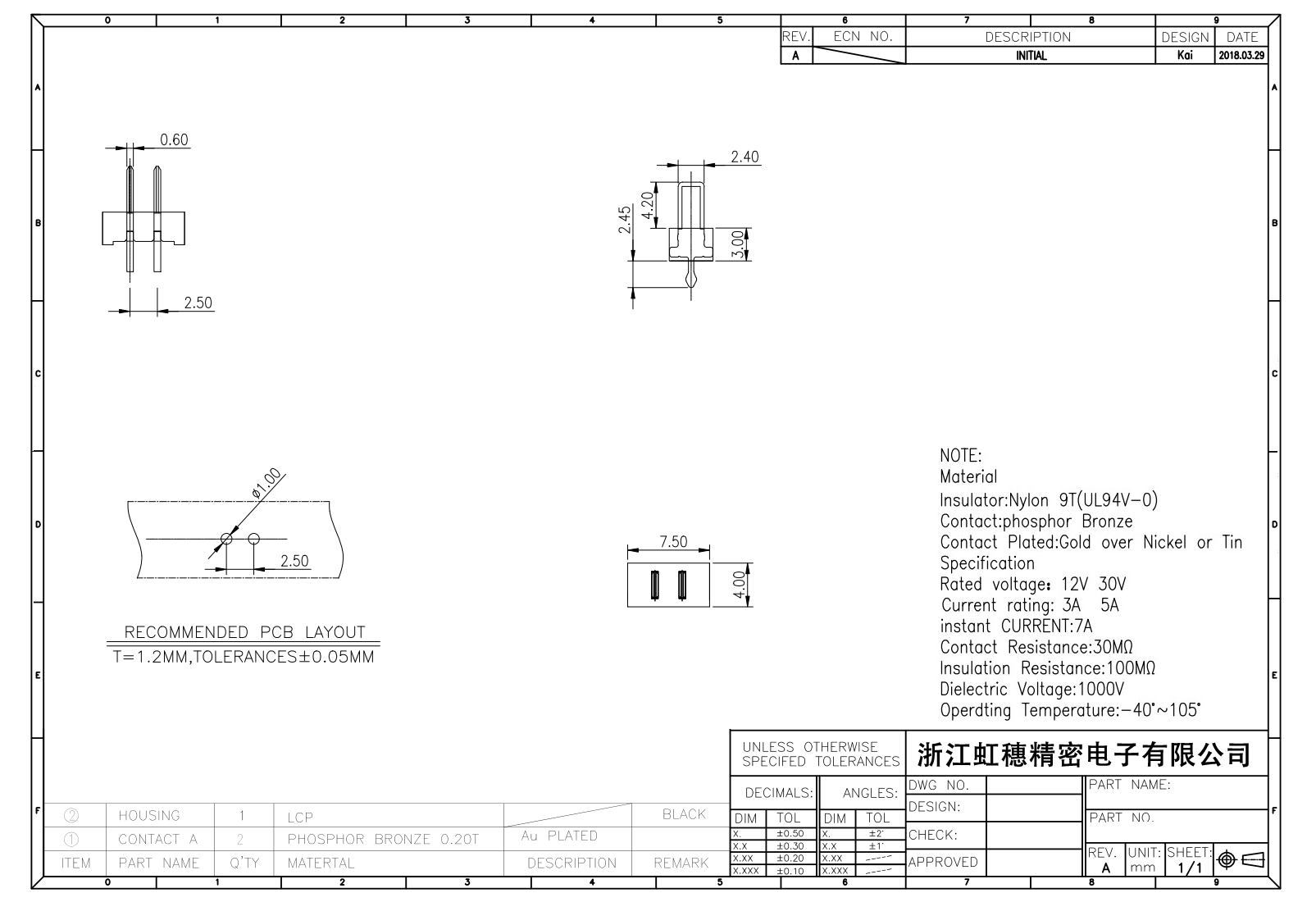 表面鍍層:金在鎳/錫之上,鍍層厚度3U″