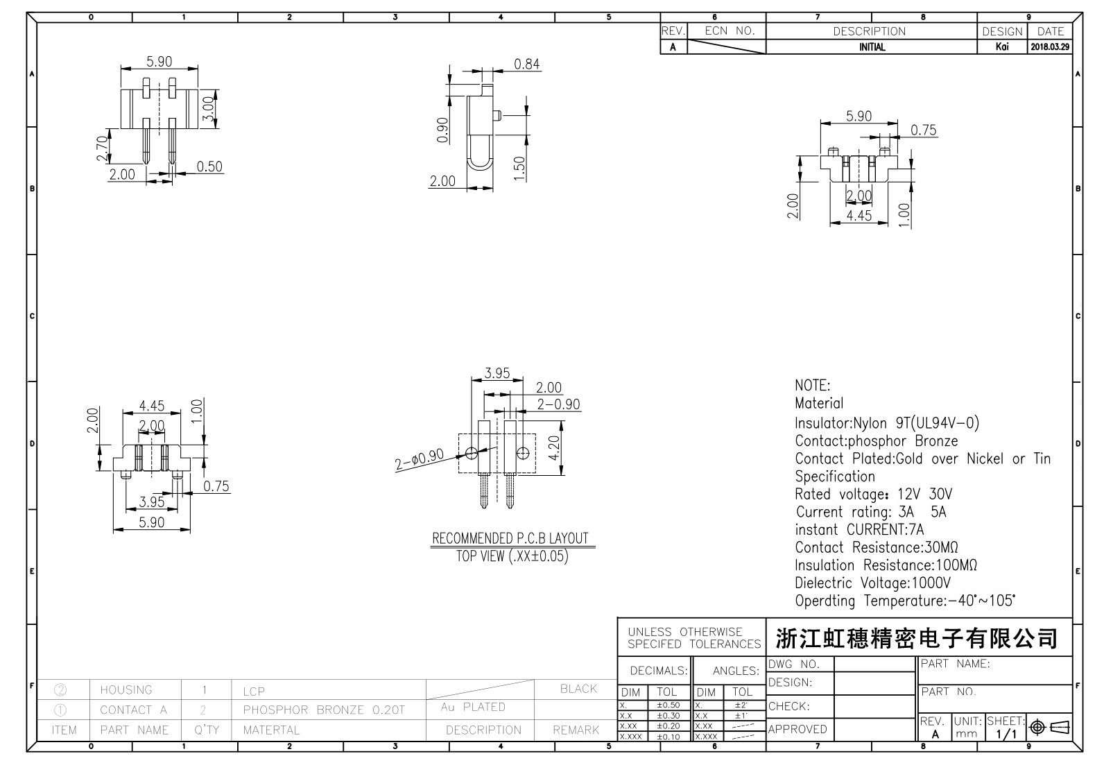絕緣主體:Nylon 6T/9TUL94V-0