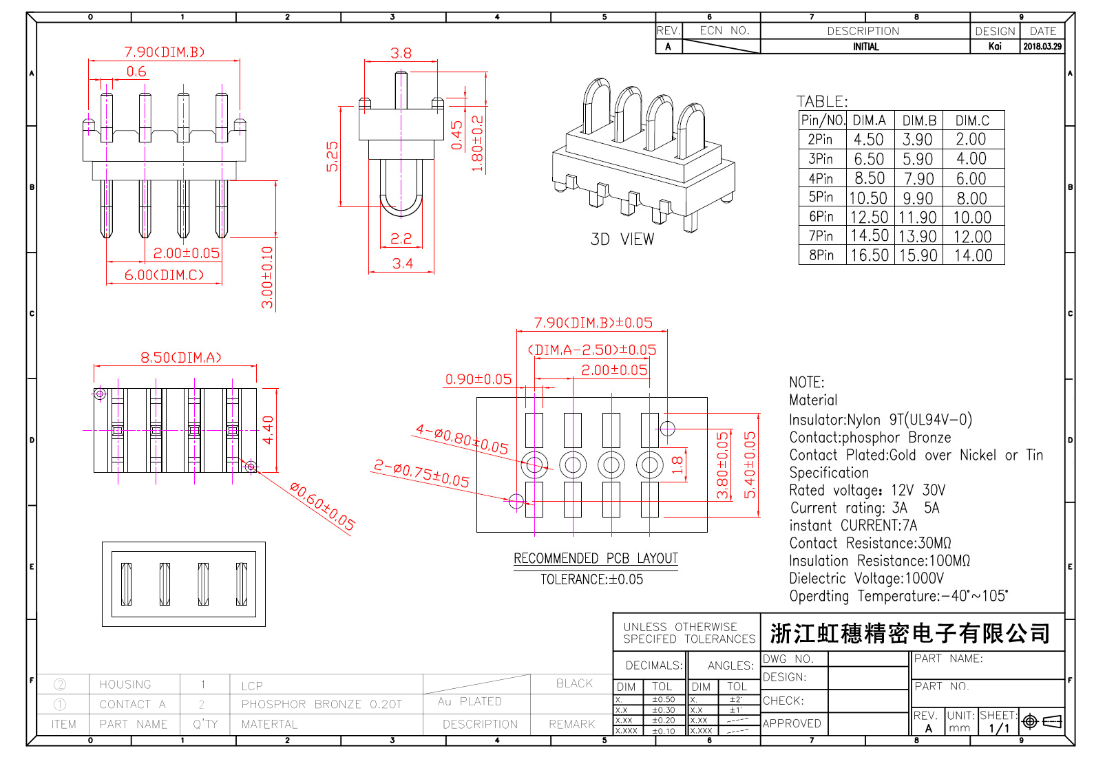 表面鍍層:金在鎳/錫之上,鍍層厚度3U