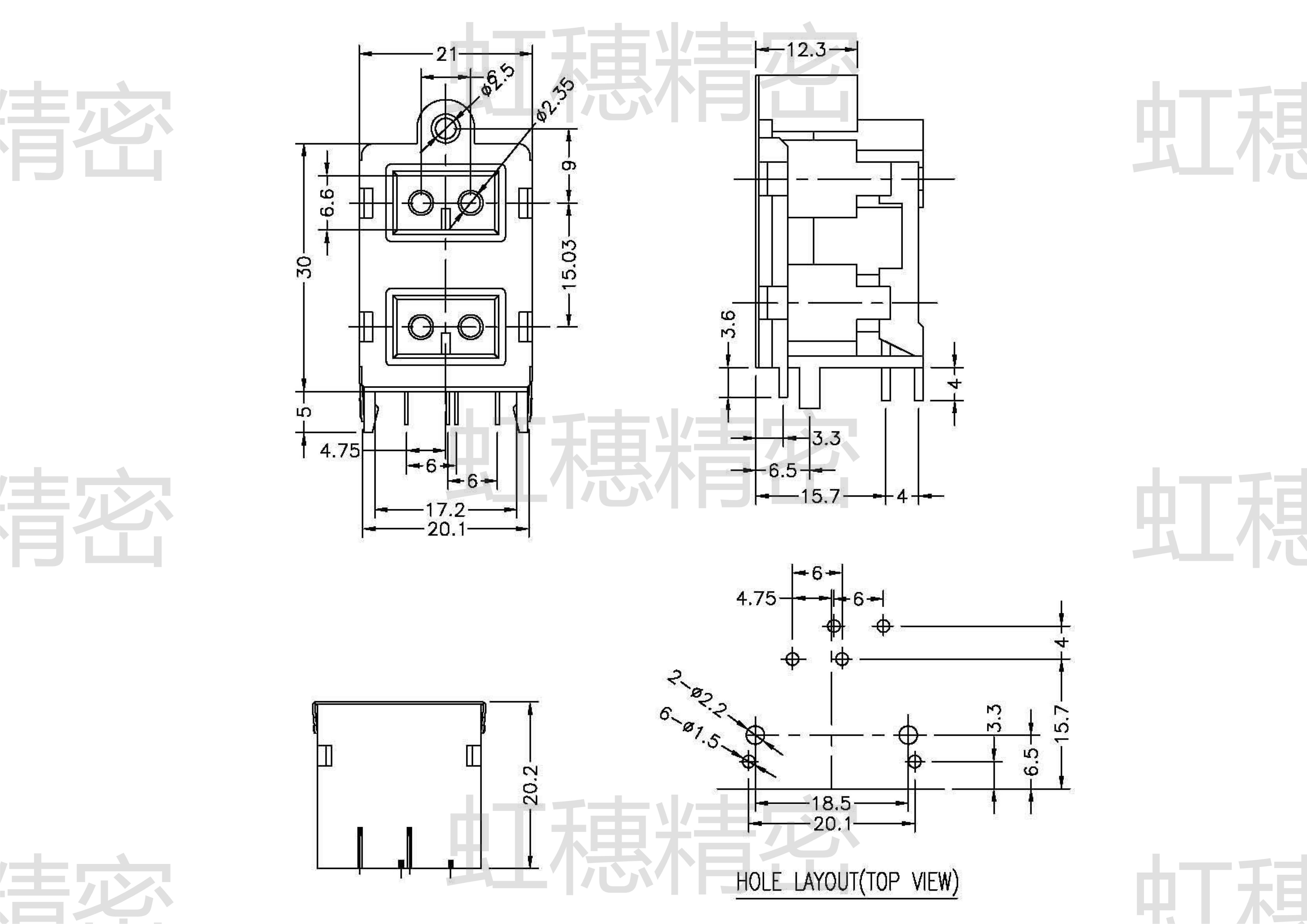 規格:19.70mm*20.00mm? ? ?? ? ? ? ? ? ? 插拔力:3-20N
