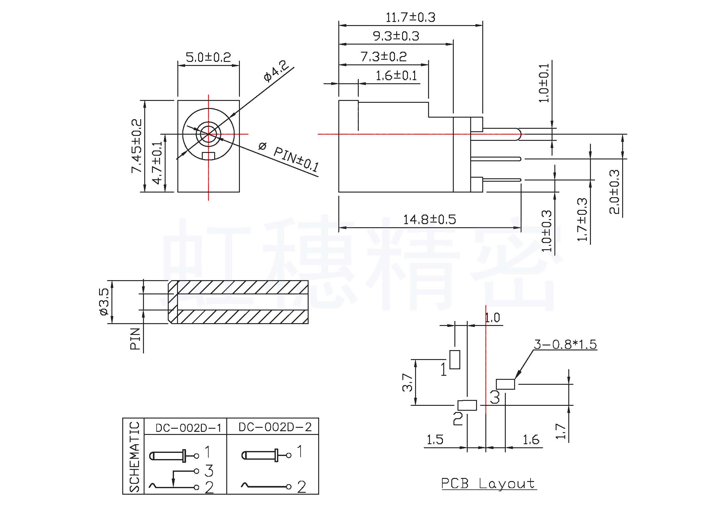 DC插座 DC002D DC電源母座Φ1.0mmΦ1.3mm立式直插3腳