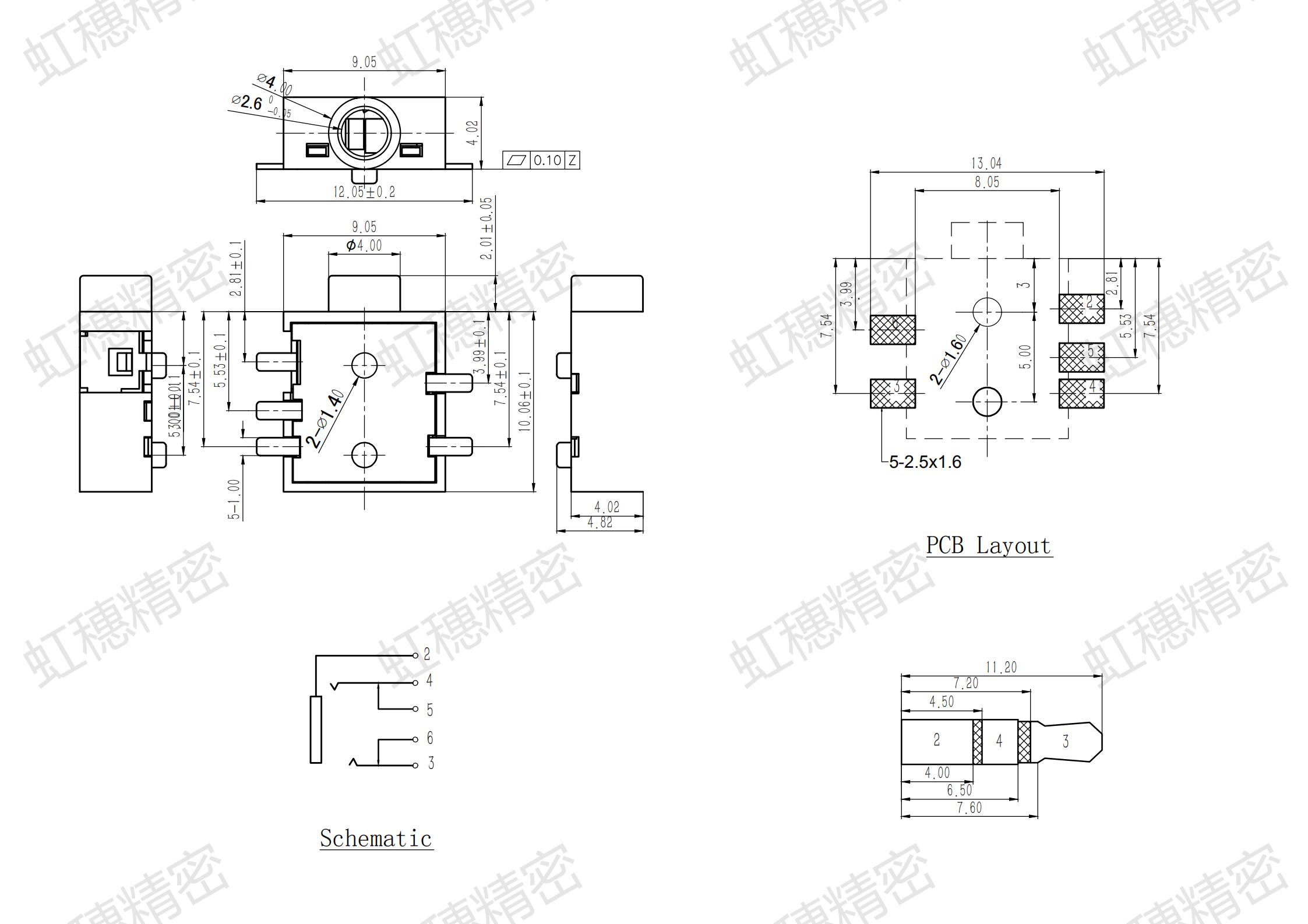 技術(shù)參數(shù): 1. 額定電流、電壓: DC 30V 0.5A 2. 接觸電阻: ≤100mΩMAX 3. 絕緣電阻: AC 500V 1Minute 4. 操作力: 3-20N 5. 回流焊: 250°CMAX 6. 使用溫度: -20 ℃ to 70 ℃ 7. 使用濕度: ≤85% RH 8. 使用壽命: 5,000 cycles 應用:數(shù)碼產(chǎn)品、音響、電腦、通訊產(chǎn)品等。 |
