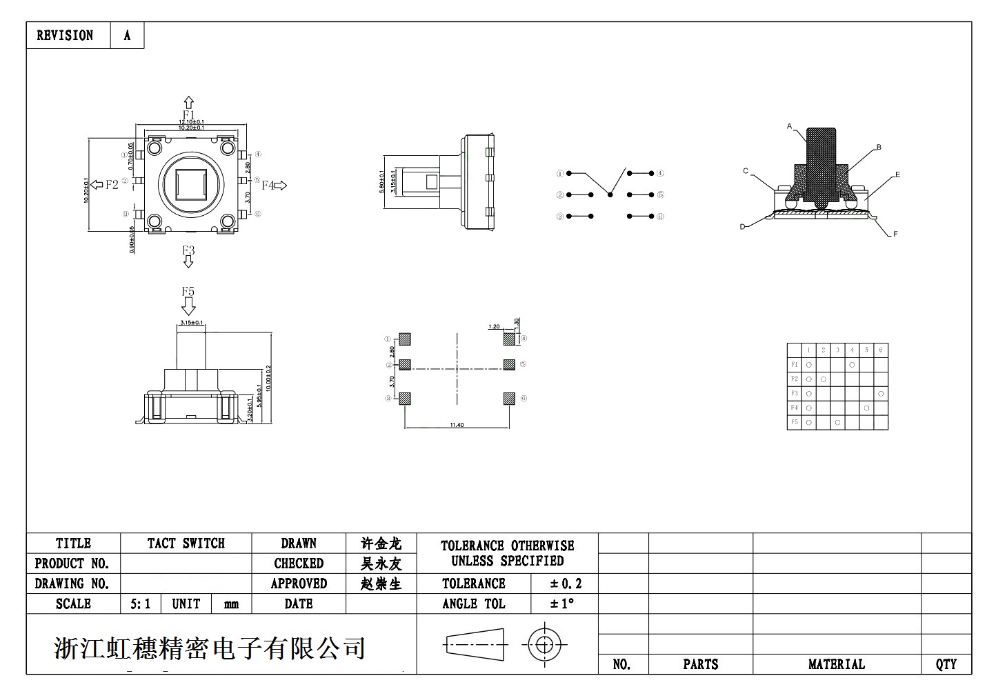 MultiFunctional Five-way Switch Light Tact Five-way Switch technical parameters: