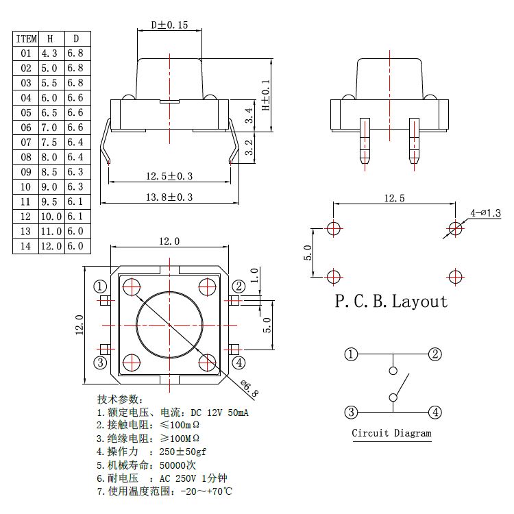 輕觸開關技術參數:
