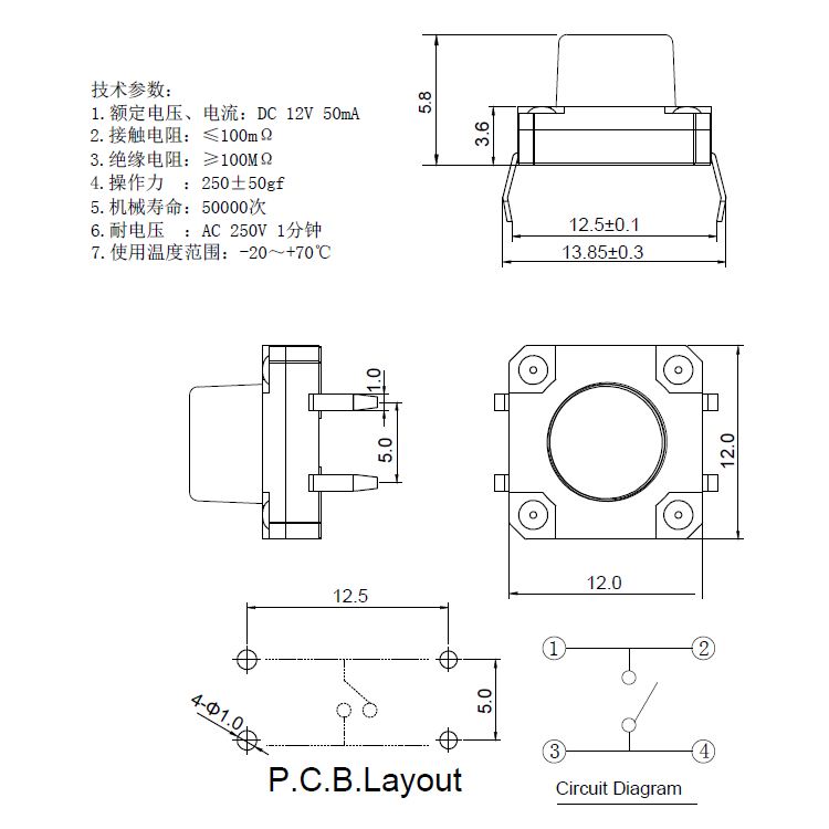 輕觸開關技術參數:
