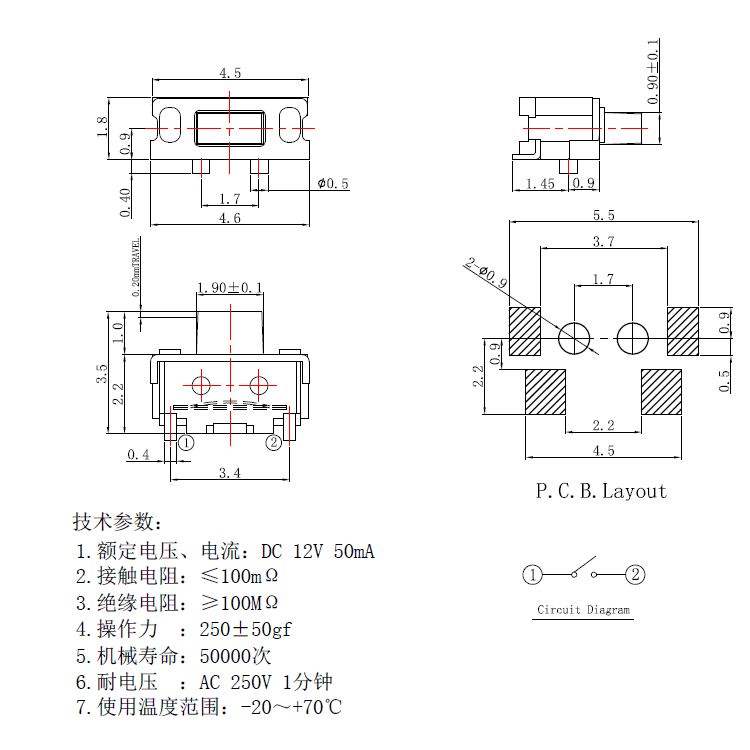 輕觸開關技術參數: