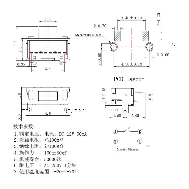 規格:2mm*4mm ? ? ? ? ? ? ? ? ?力度:160士50gf