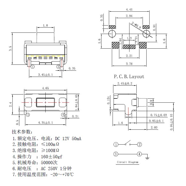 輕觸開關技術參數: