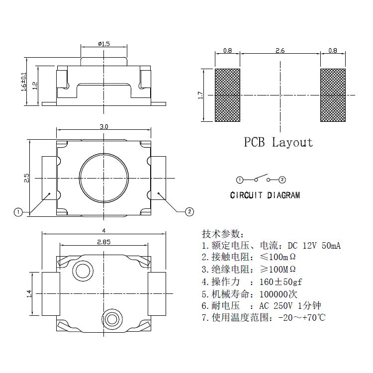 輕觸開關技術參數: