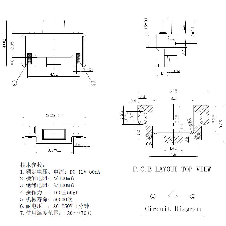 規(guī)格:2mm*4mm ? ? ? ? ? ? ? ? ?力度:160士50gf