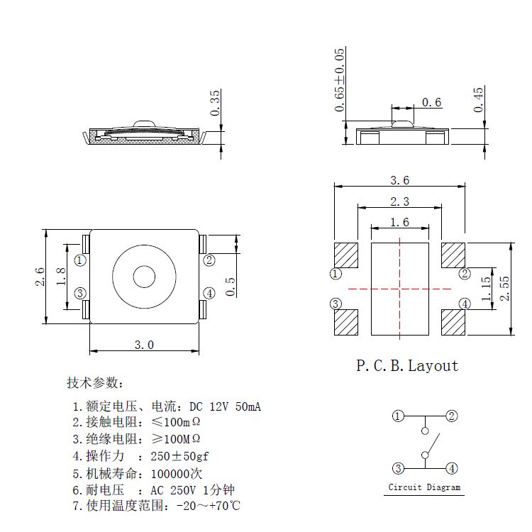 輕觸開關技術參數: