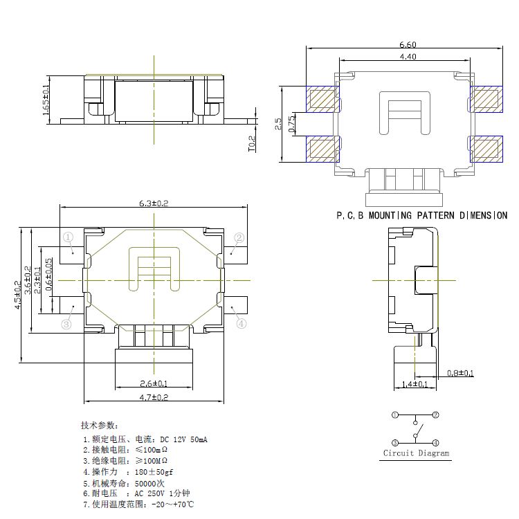 規(guī)格:3.5mm*4.7mm ? ? ? ? ? ? ? ? ?力度:250士50gf