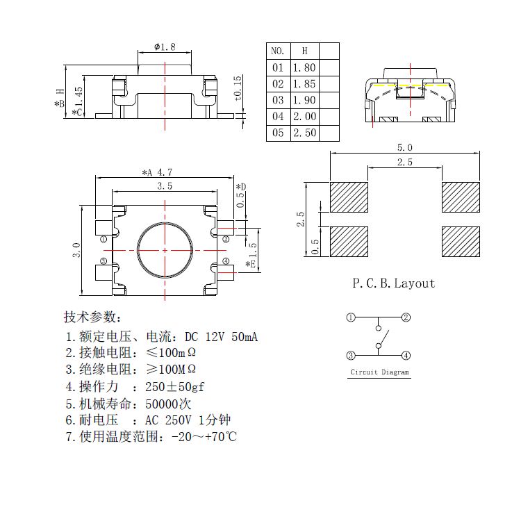 輕觸開關技術參數: