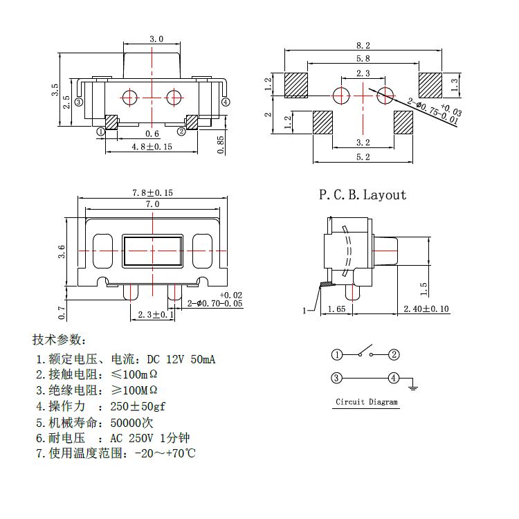 輕觸開關技術參數: