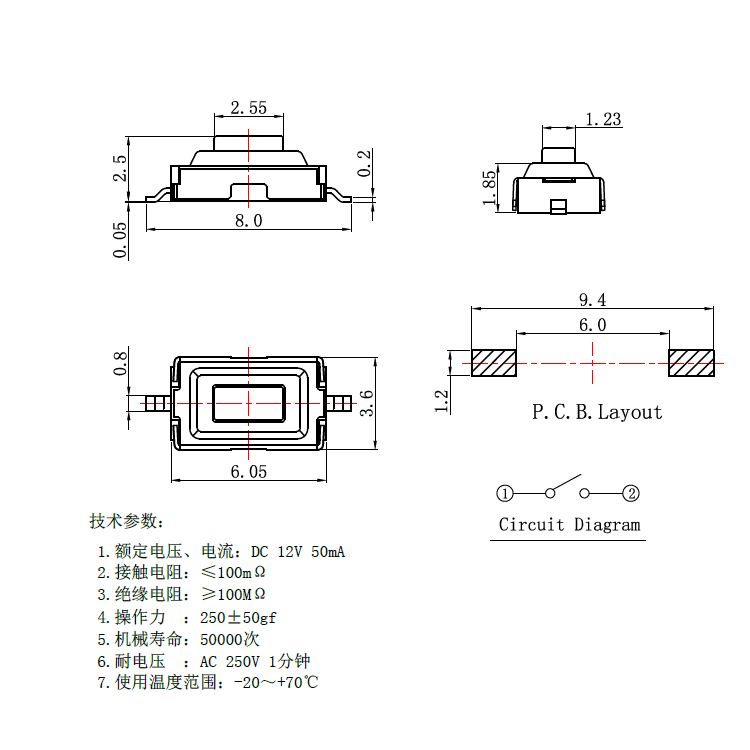 輕觸開關技術參數: