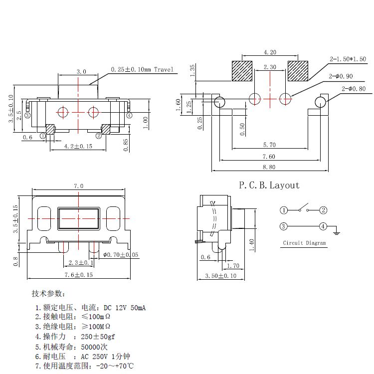 輕觸開關技術參數: