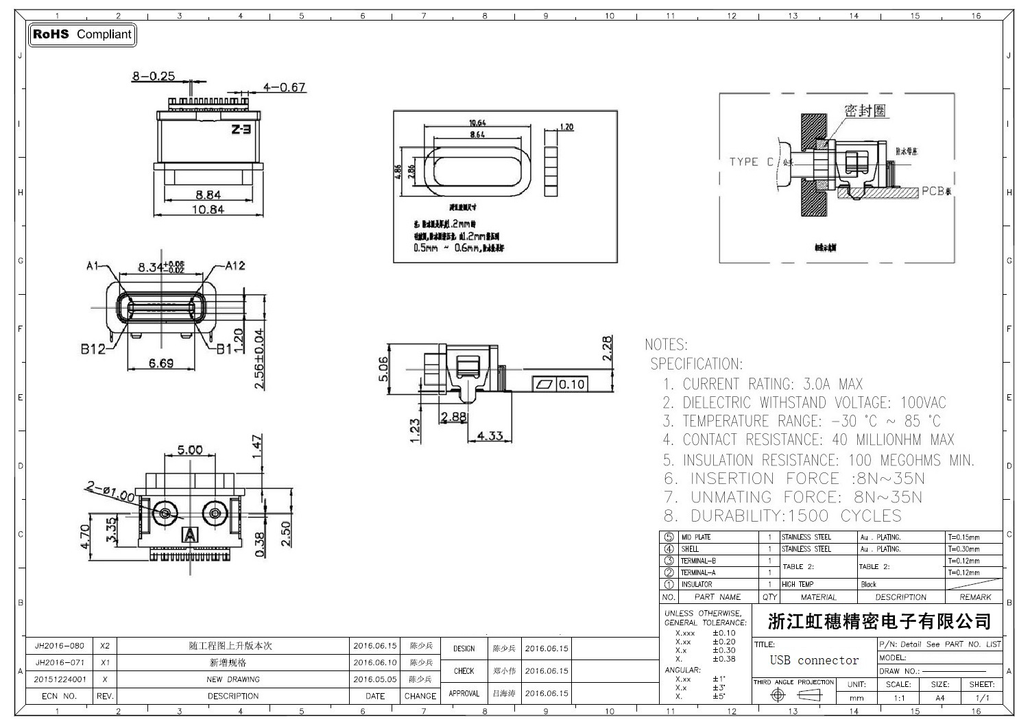 USB TypeC防水母座技術(shù)參數(shù):