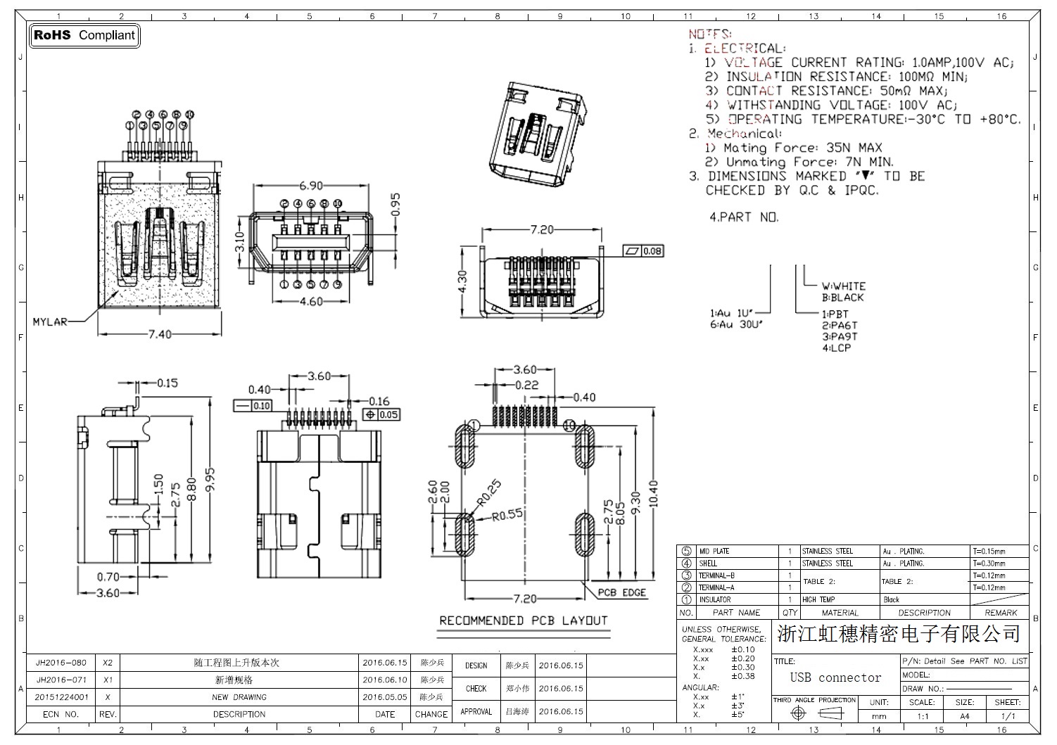 MINI USB插座技術參數: