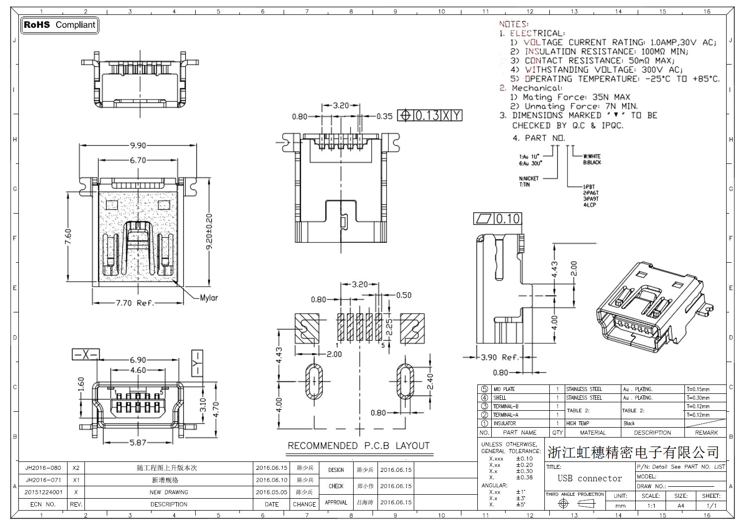 MINI USB插座技術參數: