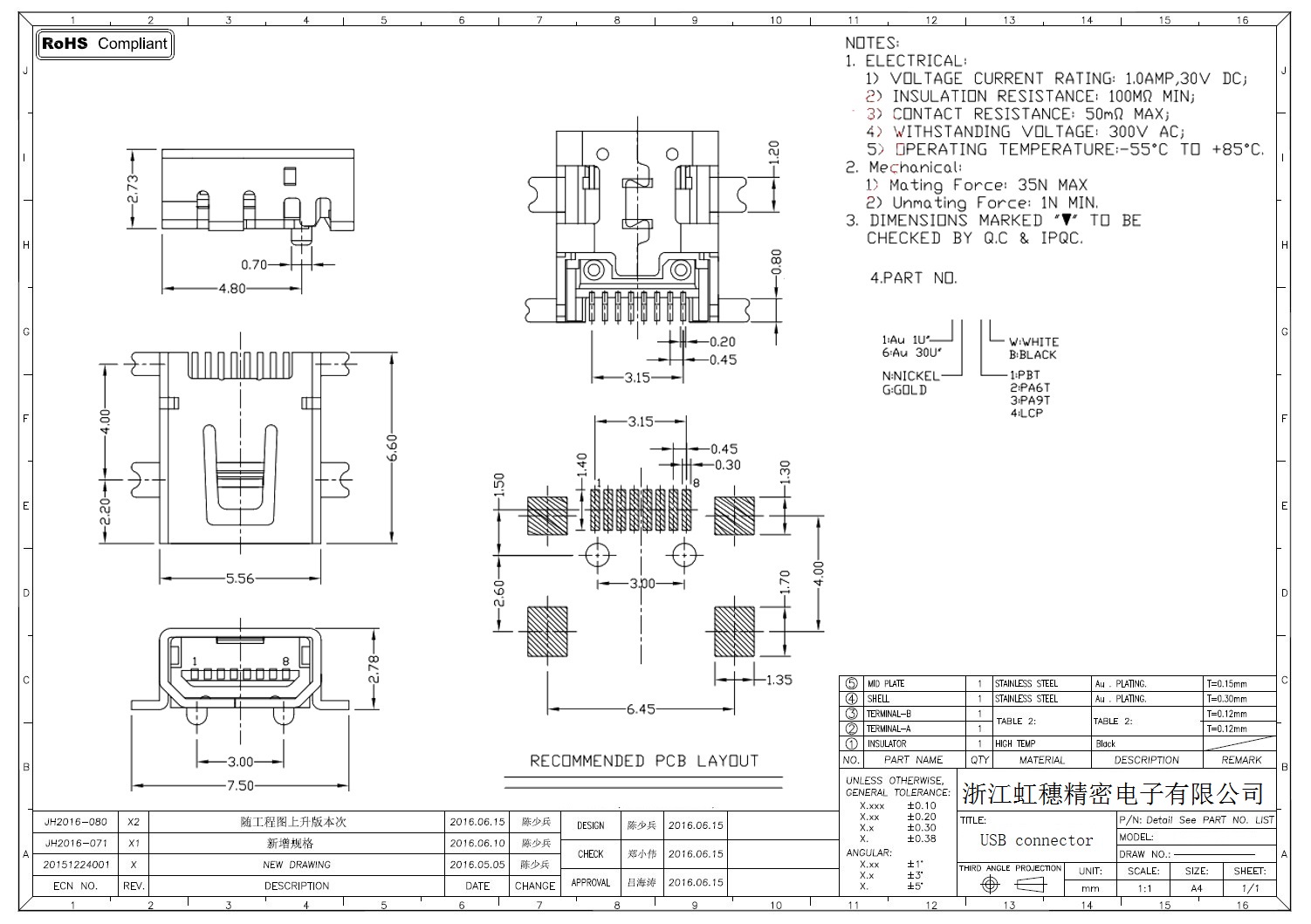 MINI USB插座技術(shù)參數(shù):