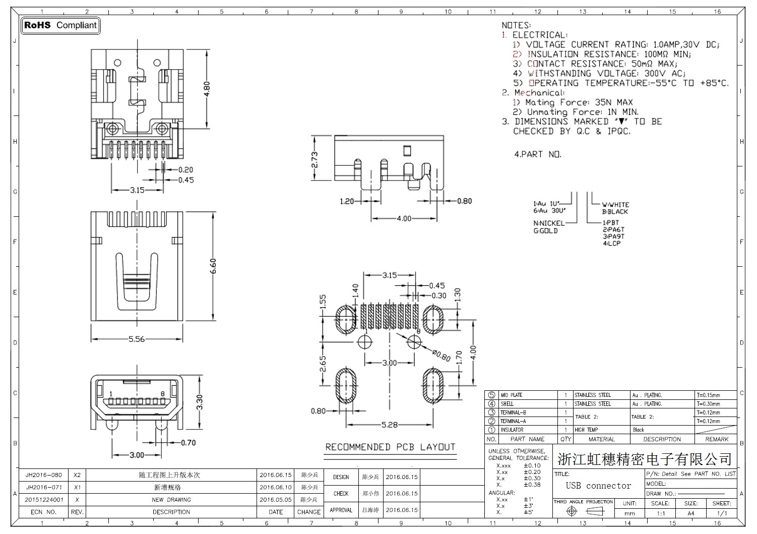 MINI USB插座技術參數: