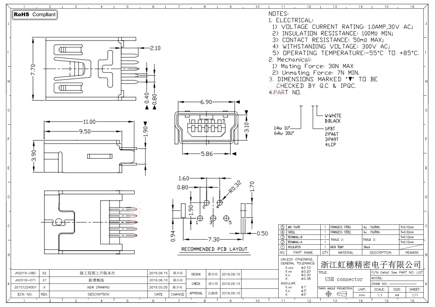 MINI USB插座技術參數: