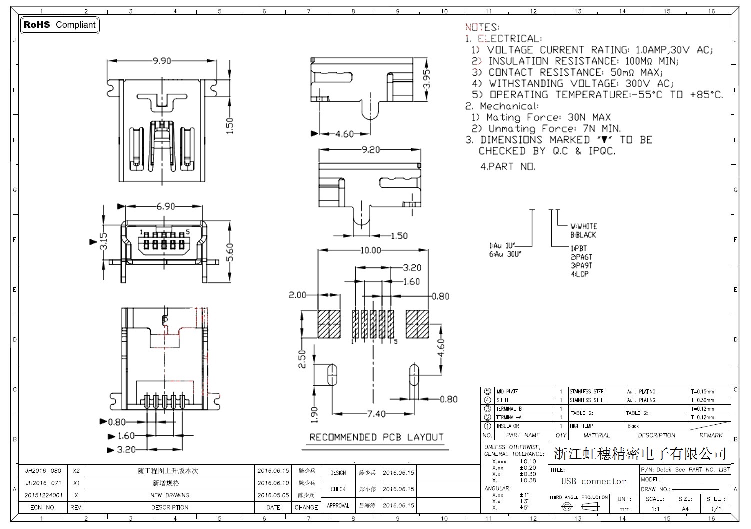 MINI USB插座技術參數: