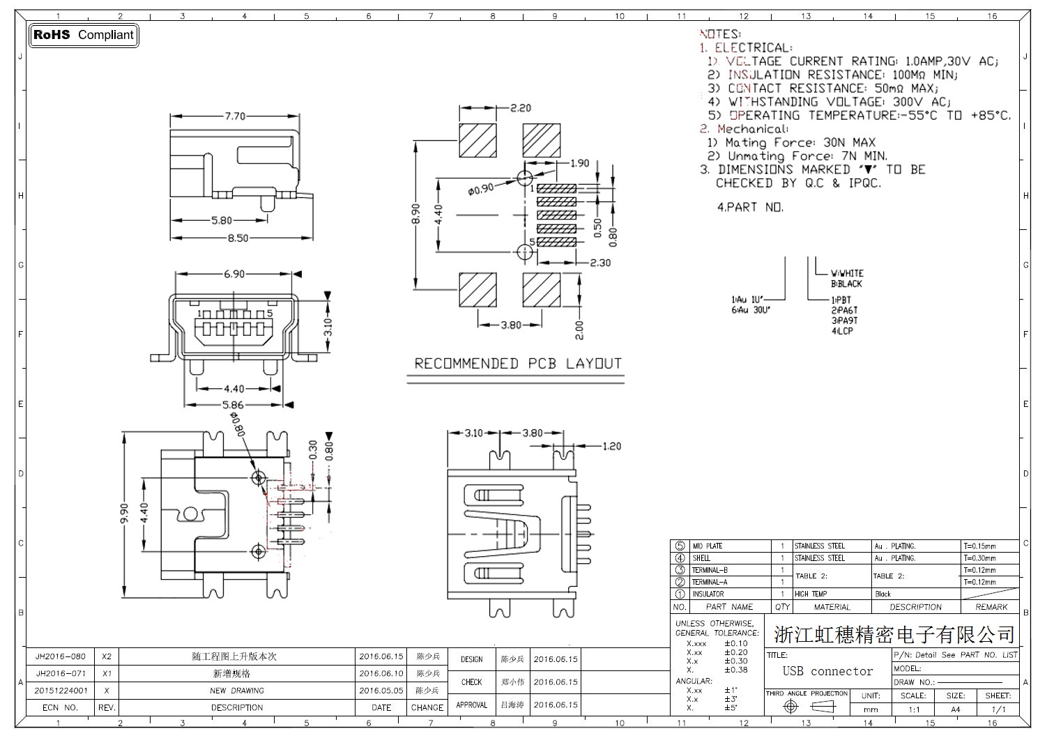 MINI USB插座技術參數: