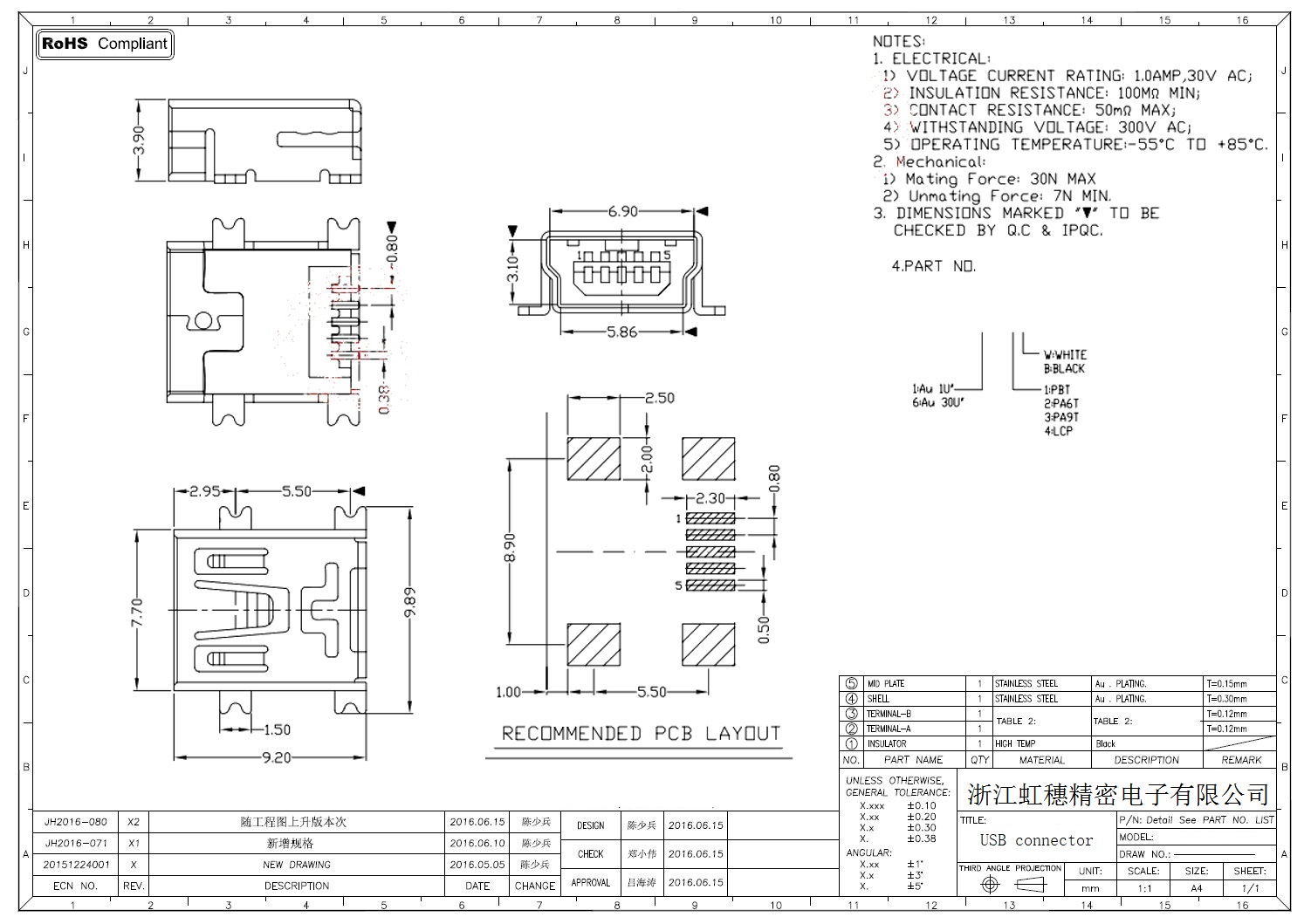 MINI USB插座技術參數: