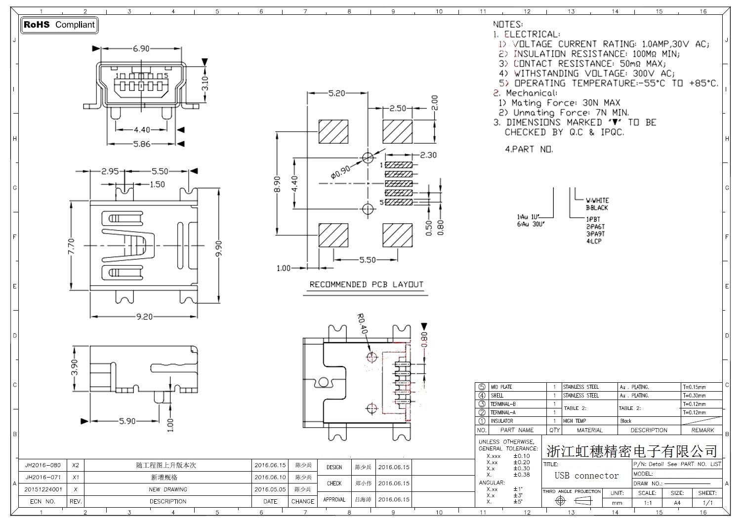 MINI USB插座技術參數: